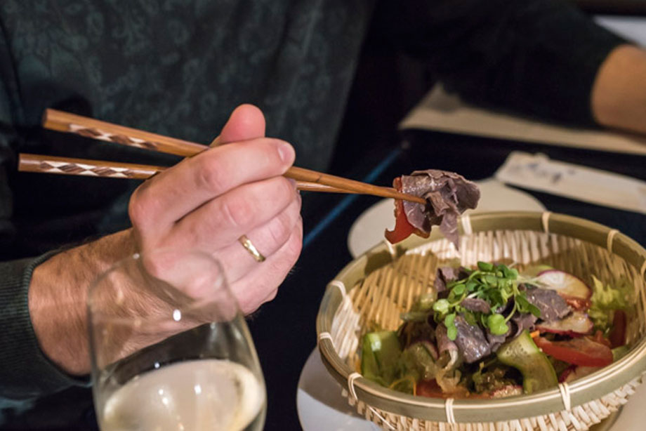 Als „Foodie“ würde ich mich nur ungern bezeichnen, dagegen spricht schon die Tatsache, dass ich oft und gern zu Hause esse, weil meine Frau super kocht. Was mir am besten an der Esskultur gefällt, ist tatsächlich der soziale Moment – dass man Leute trifft. Die Expertise kommt dann von ganz allein.