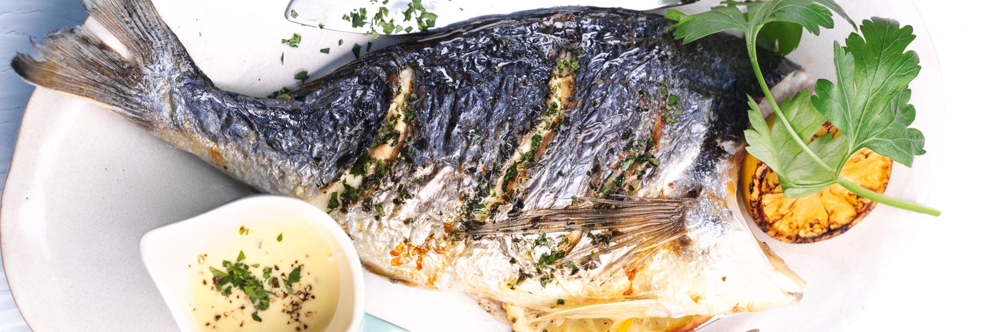 La daurade est l’un des poissons méditerranéens qui a le plus de valeur. Il est disponible toute l’année, mais est meilleur de juillet à octobre. Il présente des taches dorées sur les joues et une barre dorée au-dessus des yeux, ce qui lui vaut aussi l’appellation de « daurade royale ». Grâce à ses dents puissantes qui évoquent vaguement la dentition d’un lapin, la daurade est même capable d’ouvrir des moules et des crabes. Sa viande est maigre, et contient beaucoup de protéines et de minéraux intéressants, comme le magnésium, le calcium, le phosphore et l’iode. Sur l’étal, assurez-vous que les yeux du poisson sont brillants et que ses branchies sont humides. Plus la bande dorée située sur le front est claire, plus la daurade est fraîche. Et saviez-vous que toutes les daurades sont males à la naissance ? À l’âge de deux ou trois ans, leurs organes sexuels disparaissent et elles deviennent des femelles.