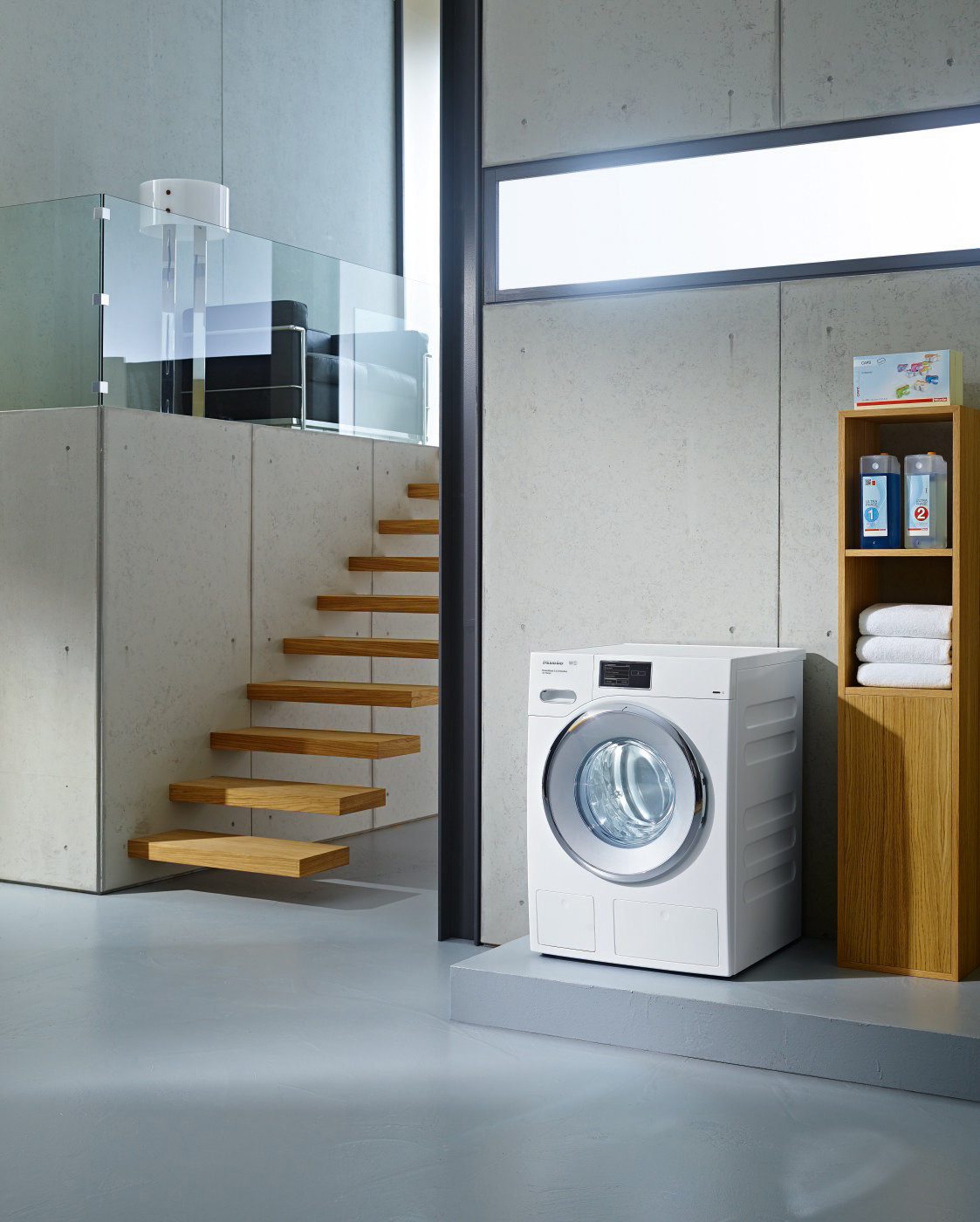 Tatsächlich unterschreitet das neue Miele Flaggschiff bei den Waschmaschinen den Grenzwert der derzeit höchsten Energieeffizienzklasse A+++ um 40 Prozent, und dies bei einer Laufzeit unter drei Stunden. Wer es richtig eilig hat, bekommt seine Wäsche sogar in weniger als einer Stunde gewaschen und geschleudert, und zwar ohne Abstriche bei Sauberkeit und Reinheit. Denn das Miele-Programm „QuickPowerWash“ ist kein herkömmliches Kurzprogramm, sondern erreicht die amtlich normierte „Waschwirkung A“, offiziell dokumentiert vom wfk-Institut in Krefeld. Die neue W1 schleudert mit bis zu 1.600 Umdrehungen in der Minute und fasst neun Kilogramm Wäsche.