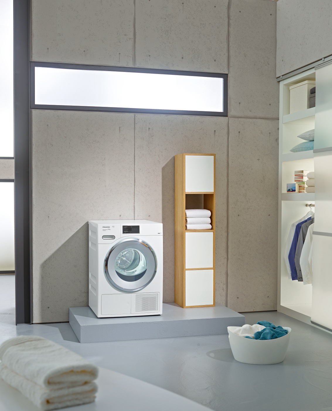 Mit ebenfalls neun Kilogramm Beladungskapazität ist der neue Trockner T1 in der Energieeffizienzklasse A+++ die ideale Ergänzung zur Waschmaschine W1. Er zeichnet sich zudem aus durch Ausstattungen wie SteamFinish oder FragranceDos. EcoFeedback bietet zudem die Möglichkeit, jederzeit Einsicht in den Verbrauch zu haben. |