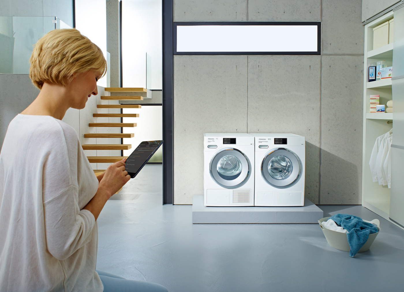 Sowohl die neue Waschmaschine als auch der neue Trockner sind vernetzungsfähig (Miele@home)“. Damit baut Miele seine seit mehr als einem Jahrzehnt konsequent verfolgte Strategie des vernetzten Hauses mit der neuen Wäschepflegegeneration weiter aus. Neu hinzu kommt die Funktion MobileControl, mit der Geräte nicht nur im Haus mobil kontrolliert und gesteuert werden können, sondern auch – ortsunabhängig – per App, mit einem Smartphone oder Tablet PC.