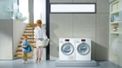 Die neuen Flaggschiffe der Wäschepflegegeräte sind die Waschmaschine W1 und der Trockner T1 mit Touchdisplay. Augenfälligstes Merkmal der neuen Geräte ist die elegante Bedienblende mit grossem Touch-Display für eine direkte, komfortable und intuitive Bedienung. Einziges weiteres Element auf der Blende ist die Ein-/Aus-Taste. Als Pärchen nebeneinander oder platzsparend als Turm – die neue W1 und der neue T1 bilden ein harmonisches Ensemble. |