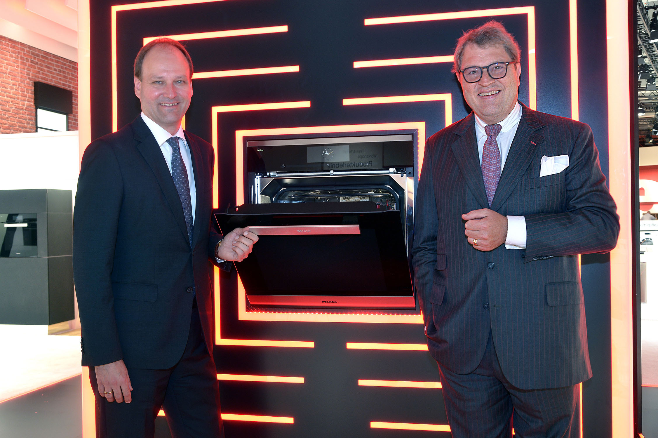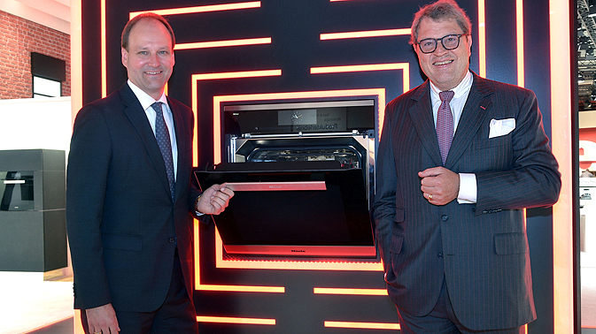 Auf der Pressekonferenz zur IFA 2017 kreiert Miele eine neue Produktgattung: Hier präsentieren Dr. Markus Miele (links) und Dr. Reinhard Zinkann den Dialoggarer. (Foto: Miele) |
