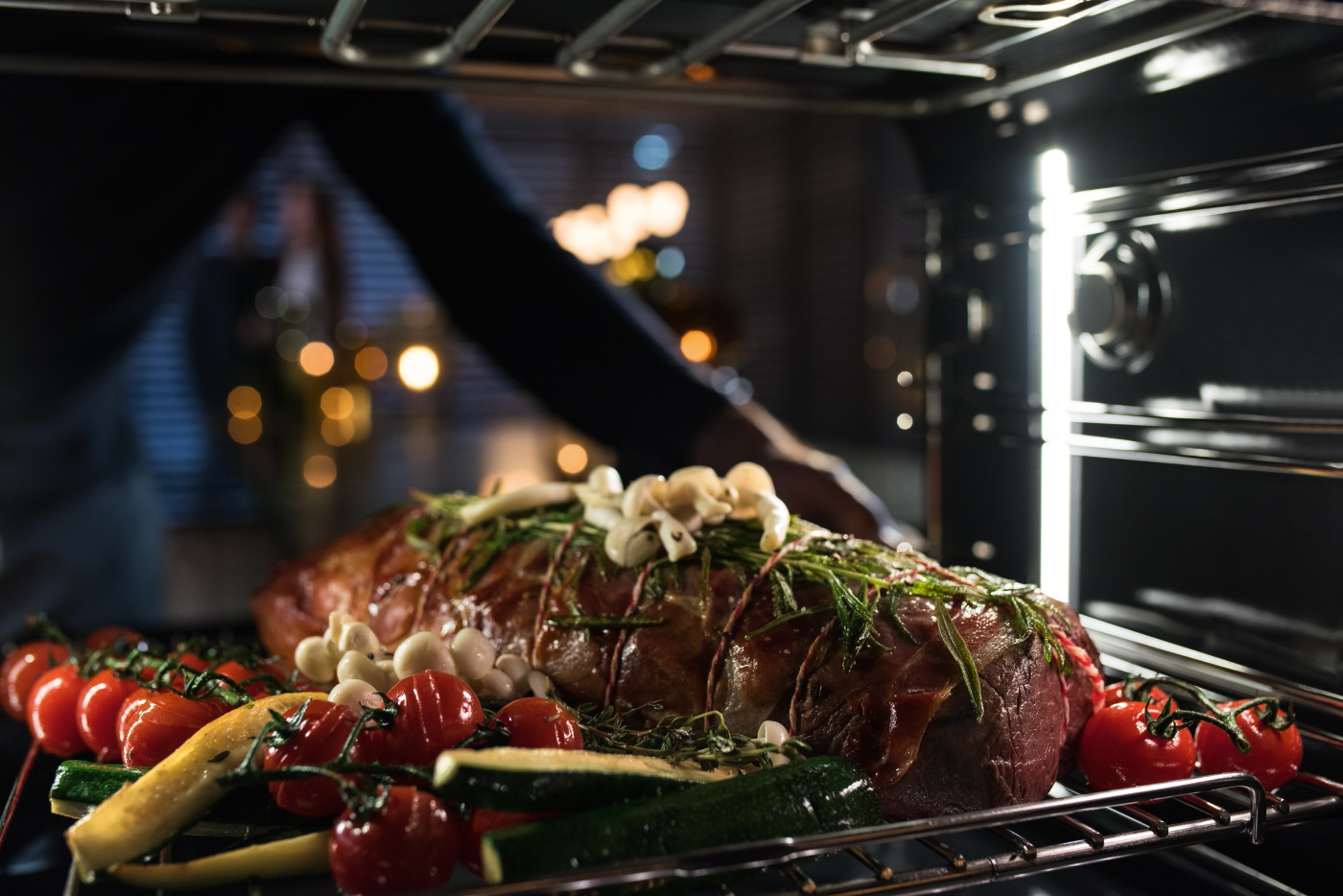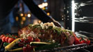 Ein Braten auf dem Gemüsebett gelingt im Dialoggarer in einem Durchgang, ohne dass das empfindliche Gemüse übergart wird. Die Zubereitung spart zudem deutlich an Zeit. (Foto: Miele) |