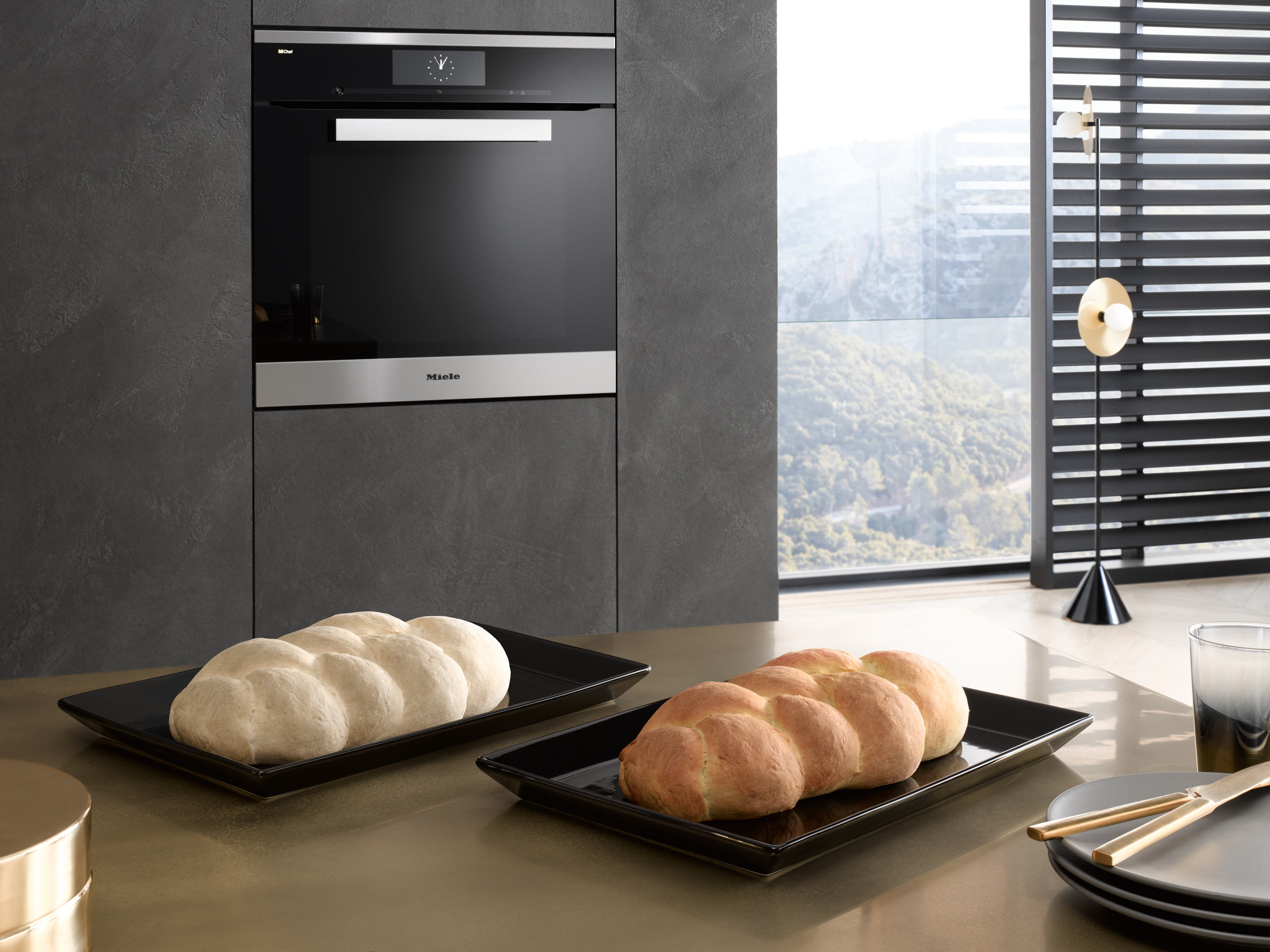 Da elektromagnetische Wellen garen, ohne zu bräunen, lässt sich zum Beispiel Brot ohne Kruste zubereiten. Für klassisch gebackenes Brot – oder etwa auch für den Geschmack der Röstaromen im Fleisch – wird die M Chef Technologie mit konventionellen Betriebsarten kombiniert. Dafür ist der Dialoggarer bestens gerüstet, denn er bietet auch die Features der Spitzenklasse-Kochgeräte von Miele, benutzerfreundliches M Touch-Display und selbstreinigende Pyrolysefunktion inklusive. Für eine elegante und gleichmässige Ausleuchtung aller Ebenen sorgt hier erstmals die hochwertige LED-Beleuchtung BrilliantLight.