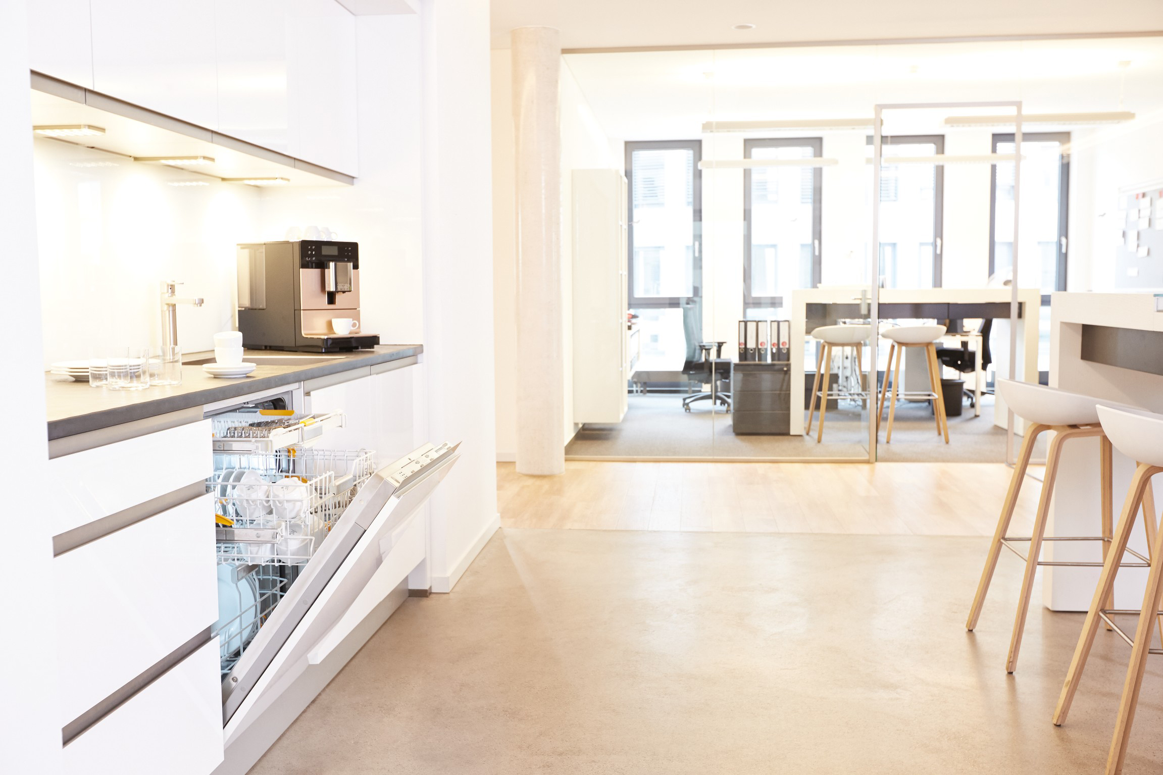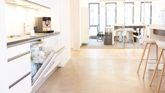 Sauberes Geschirr in nur 17 Minuten – im Büro und anderswo: Dafür sorgt ein neuer Spüler aus der Baureihe ProfiLine von Miele Professional. (Foto: Miele) |