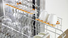 Viel Komfort bietet die Korbgestaltung der neuen ProfiLine-Spüler: Im Unterkorb gibt es zum Beispiel höhenverstellbare FlexCare-Gläserhalter, deren glasfaserverstärkter, genoppter Kunststoff auf der Oberseite kleineren Teilen wie Tassen eine sichere Position bietet. (Foto: Miele) |