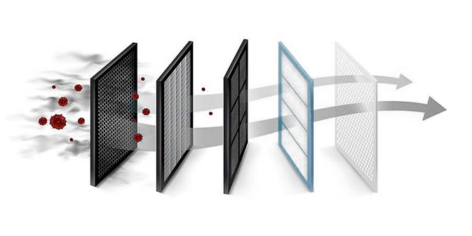 ein HEPA-Hochleistungsfilter H14 selbst feinste Teilchen auf, sodass im Ergebnis mehr als 99,995 Prozent aller Schwebstoffe, Viren, Bakterien und Pilze unschädlich gemacht werden.