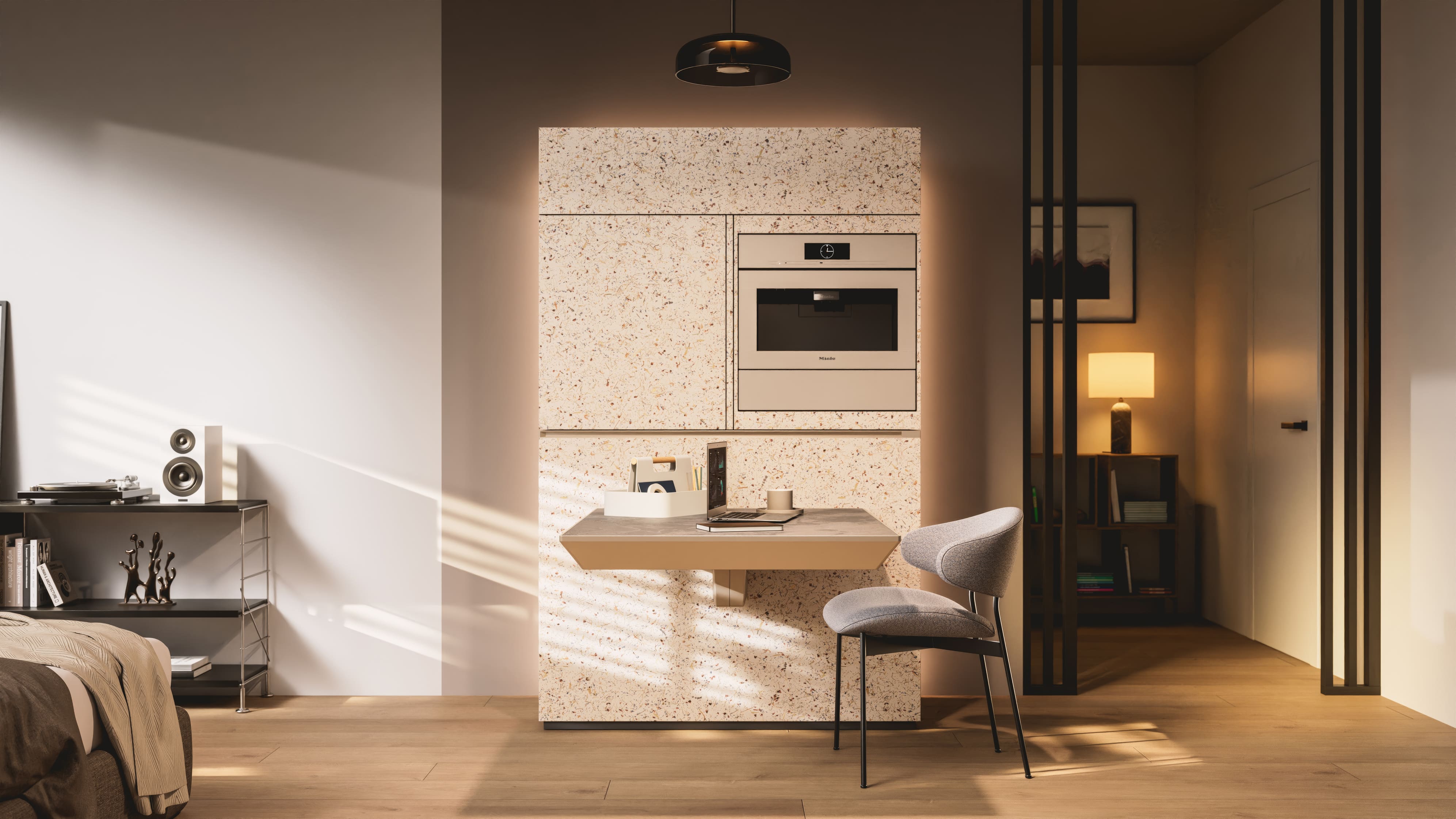 Das Möbel dient auch als vollwertiger Arbeitsplatz auf kleinem Raum. (Foto: Miele) |