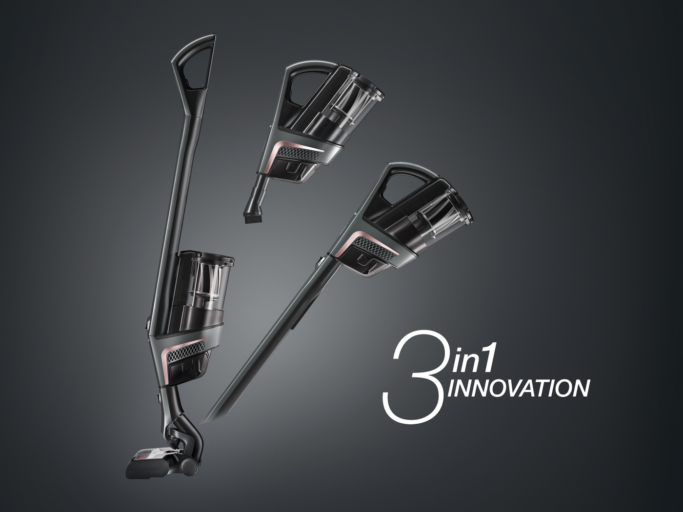Nach diesen Massstäben konnte auch der kabellose Handstaubsauger Triflex HX1 von Miele punkten. Dank seines einzigartigen Designs lässt er sich in wenigen Sekunden umbauen und vereint so drei Staubsauger in einem. „Herzstück“ ist die PowerUnit, bestehend aus Motoreinheit, Akku und Staubbox. Ist diese direkt unter dem Griff angebracht, lässt sich der Triflex leicht manövrieren und bequem an Decken oder unter niedrigen Möbeln saugen. Befindet sie sich dagegen im unteren Bereich, verschiebt sich der Schwerpunkt entsprechend und auch grosse Flächen lassen sich mühelos reinigen. Zum Entfernen von Krümeln auf dem Frühstückstisch oder im Auto ist dagegen der Solobetrieb der PowerUnit ideal. Kombiniert wird diese Flexibilität mit leistungsstarker Saugkraft und schnellerer Reinigung. Der wechselbare Akku ermöglicht eine Laufzeit von bis zu 60 Minuten. Das Spitzenmodell Triflex HX1 Pro ist bereits mit einem zweiten Akku ausgestattet und erreicht damit sogar eine Laufzeit von bis zu 120 Minuten.