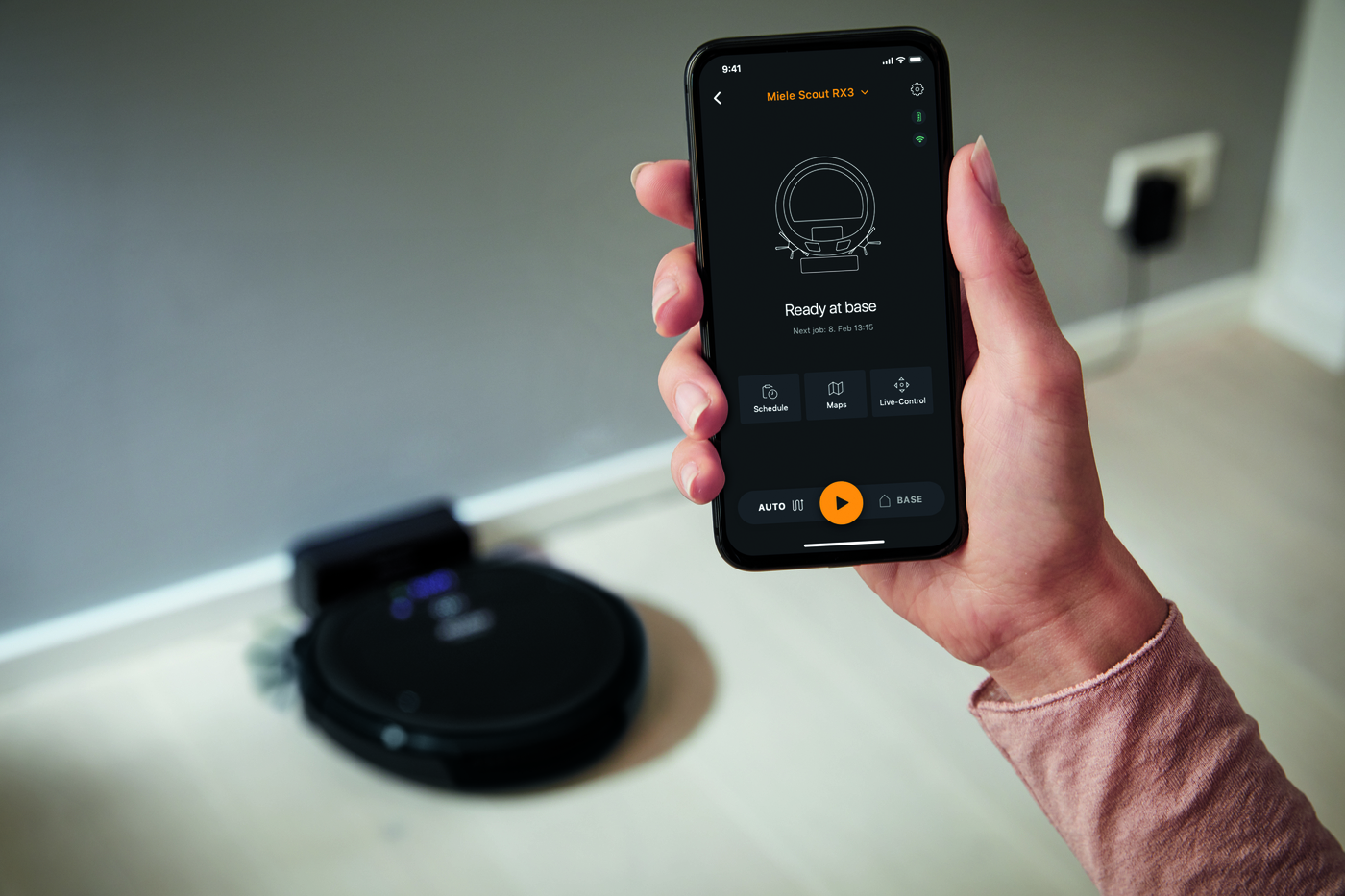Über die komplett neu entwickelte Miele Scout App kann der Saugroboter bequem mit einem Smartphone mobil gesteuert werden, inklusive nützlicher Funktionen wie Timer und Statusabfrage. Ein weiteres Highlight ist, dass das Modell Scout RX3 Home Vision HD über eine HD-Kamera verfügt, die hochauflösende Bilder direkt an das Endgerät überträgt.