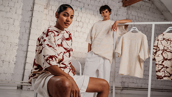 Foto 1: Die «T-Shirts for Positive Impact» (links im Bild) wurden von Yannik Zamboni im Auftrag von Miele in einer limitierten Auflage von 300 Stück hergestellt und sind seit wenigen Tagen online erhältlich. (Foto: Miele)