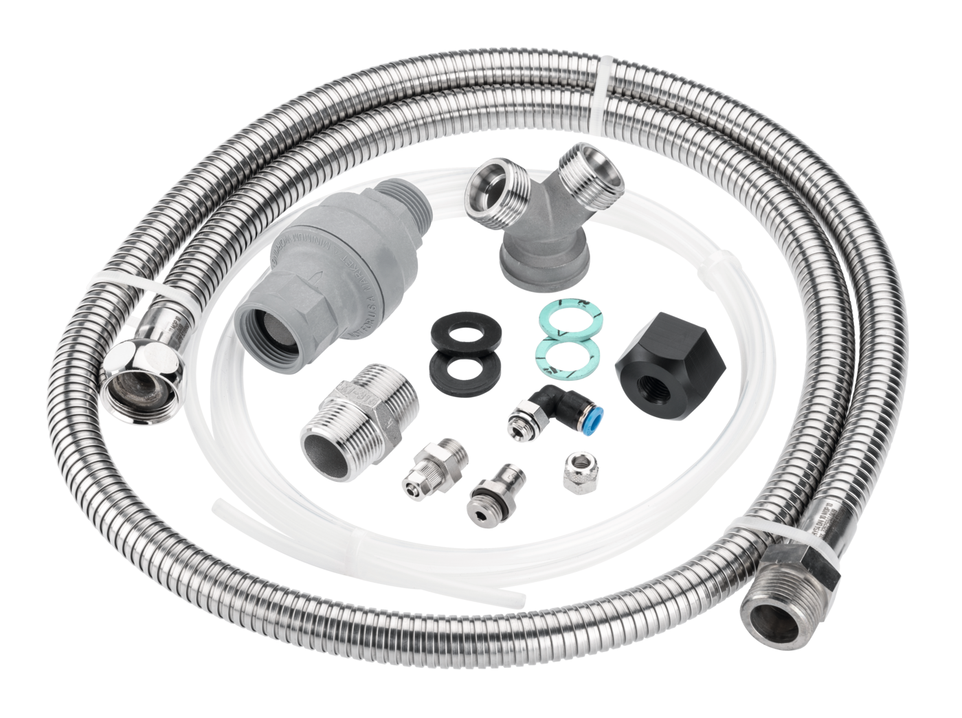 Verbindungsset für Cube/X-Sterilisatoren mit Vollentsalzungspatronen VE P 2000 und VE P 2800.