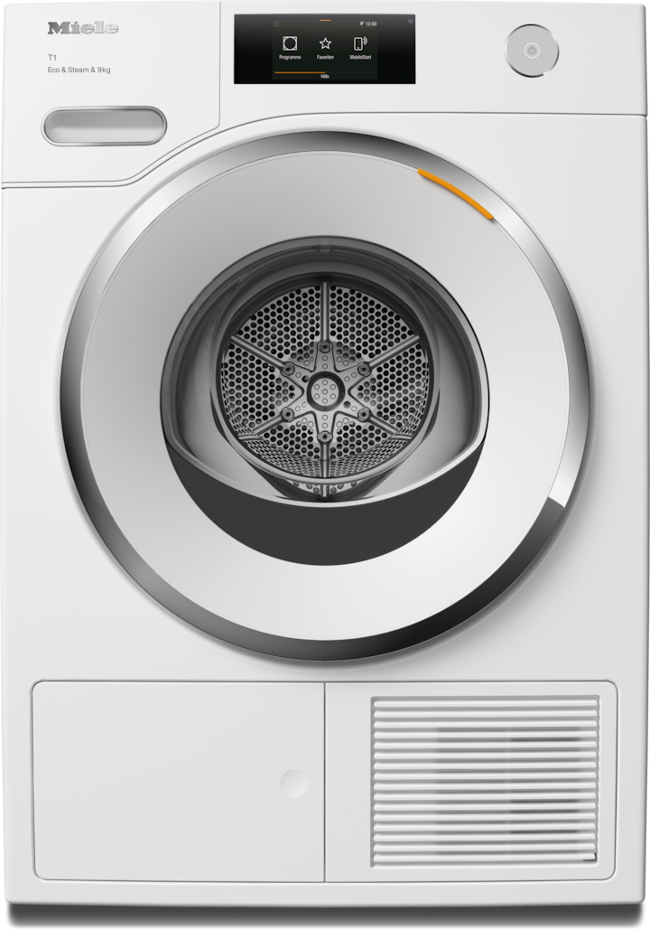 - 2.Während der Entwicklungsphase der Trocknerserie T1/T2 hat Miele Modelle und Kernkomponenten mit 5'000 Trockengängen (= 5 Trockengänge pro Woche für 50 Wochen p.a.) in diversen Programmen getestet. Mehr: miele.com/20years