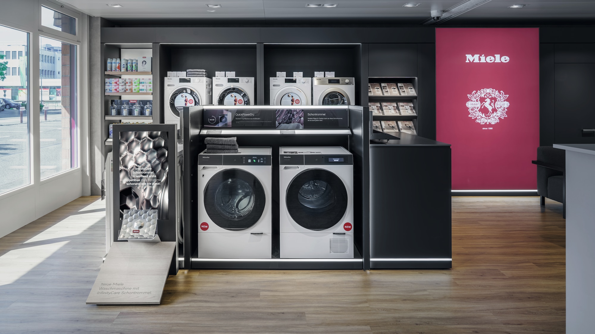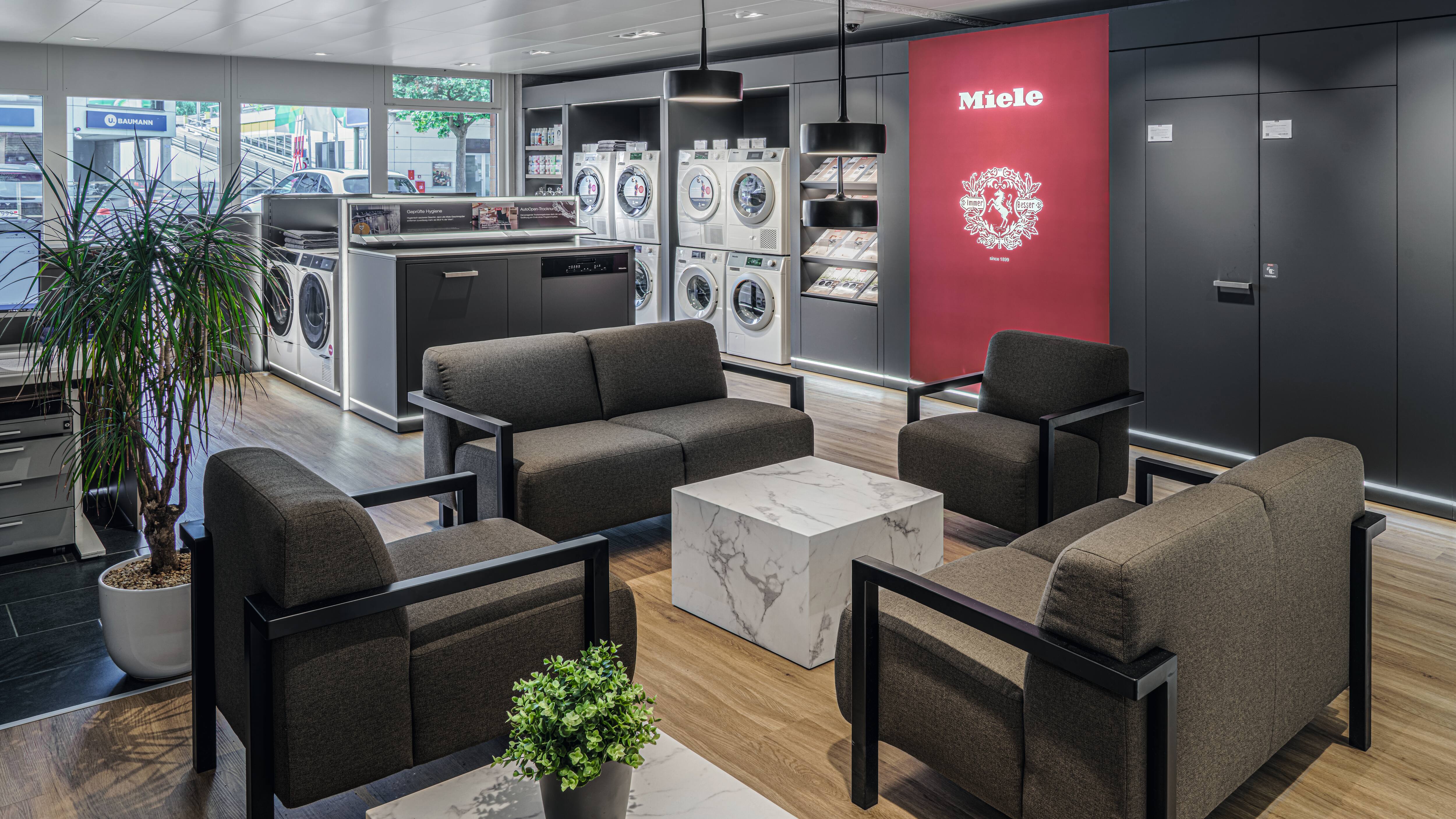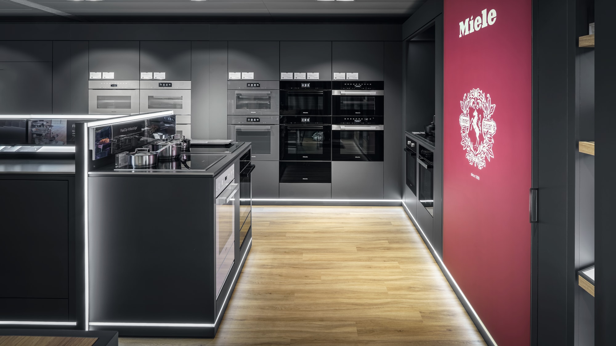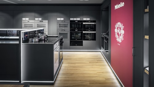 Dans notre grande exposition, vous pourrez expérimenter de près l'univers de Miele. Vous apprendrez à connaître les appareils, leurs différents éléments de commande et leurs fonctions. Vous découvrirez également les innovations qui vous seront utiles au quotidien. Comme par exemple la mise en réseau intelligente des appareils, qui vous permet de commander confortablement vos appareils via l’application Miele.