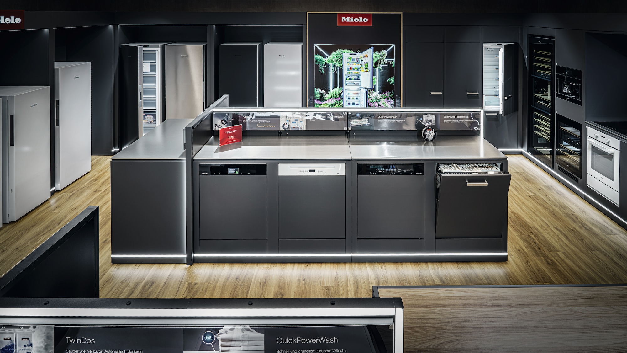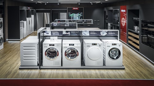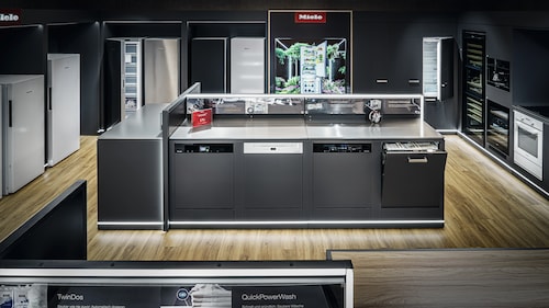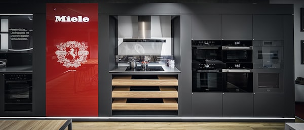 Dans notre grande exposition, vous pourrez expérimenter de près l'univers de Miele. Vous apprendrez à connaître les appareils, leurs différents éléments de commande et leurs fonctions. Vous découvrirez également les innovations qui vous seront utiles au quotidien. Comme par exemple la mise en réseau intelligente des appareils, qui vous permet de commander confortablement vos appareils via l’application Miele.
