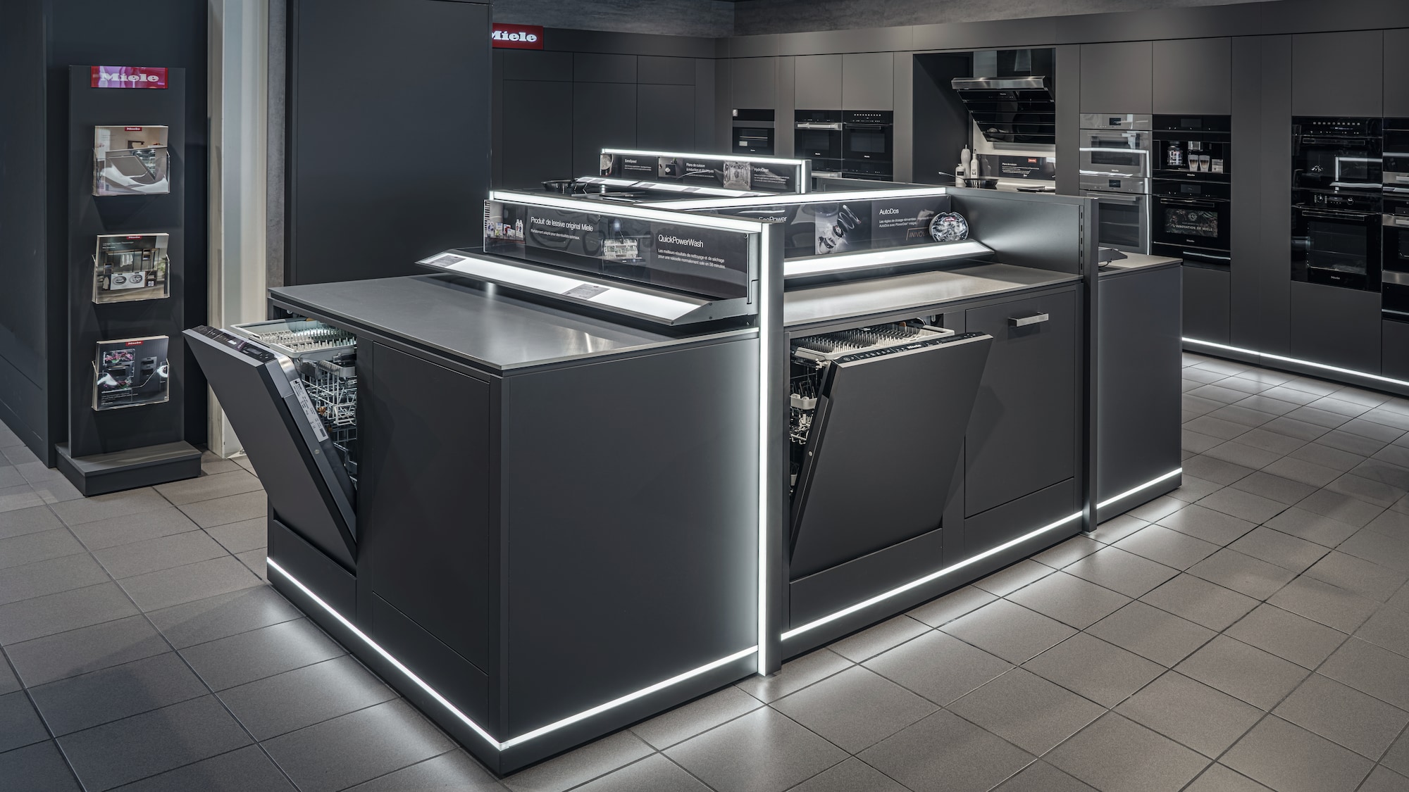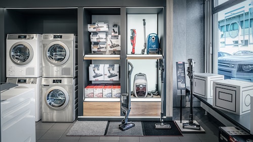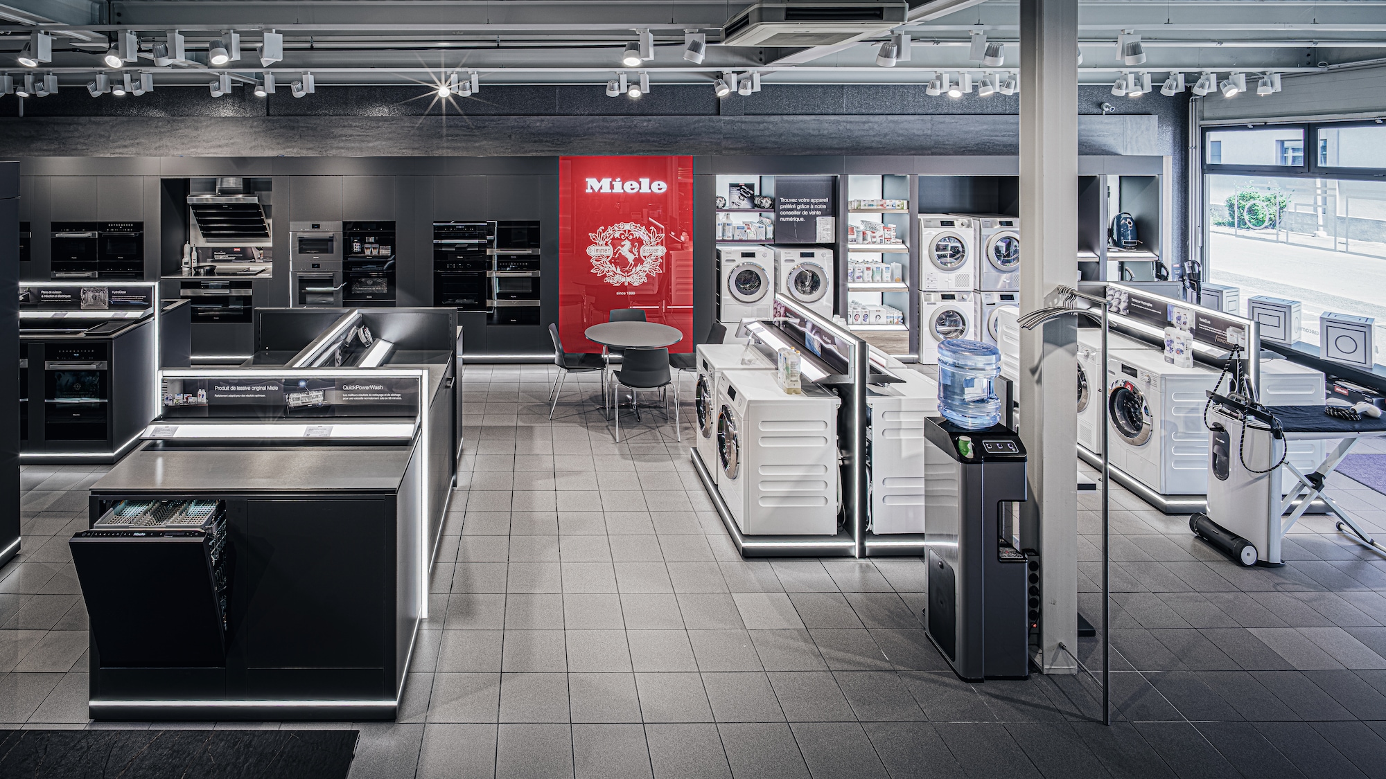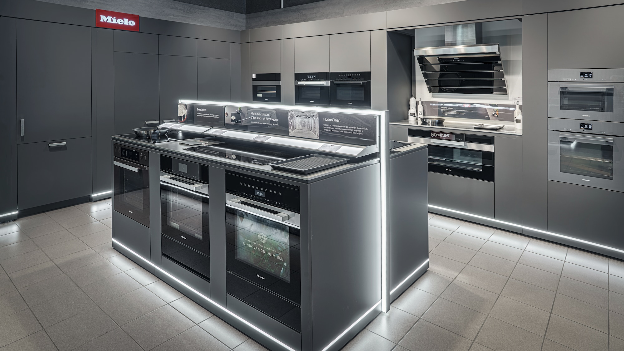 Dans notre grande exposition, vous pourrez expérimenter de près l'univers de Miele. Vous apprendrez à connaître les appareils, leurs différents éléments de commande et leurs fonctions. Vous découvrirez également les innovations qui vous seront utiles au quotidien. Comme par exemple la mise en réseau intelligente des appareils, qui vous permet de commander confortablement vos appareils via l’application Miele.