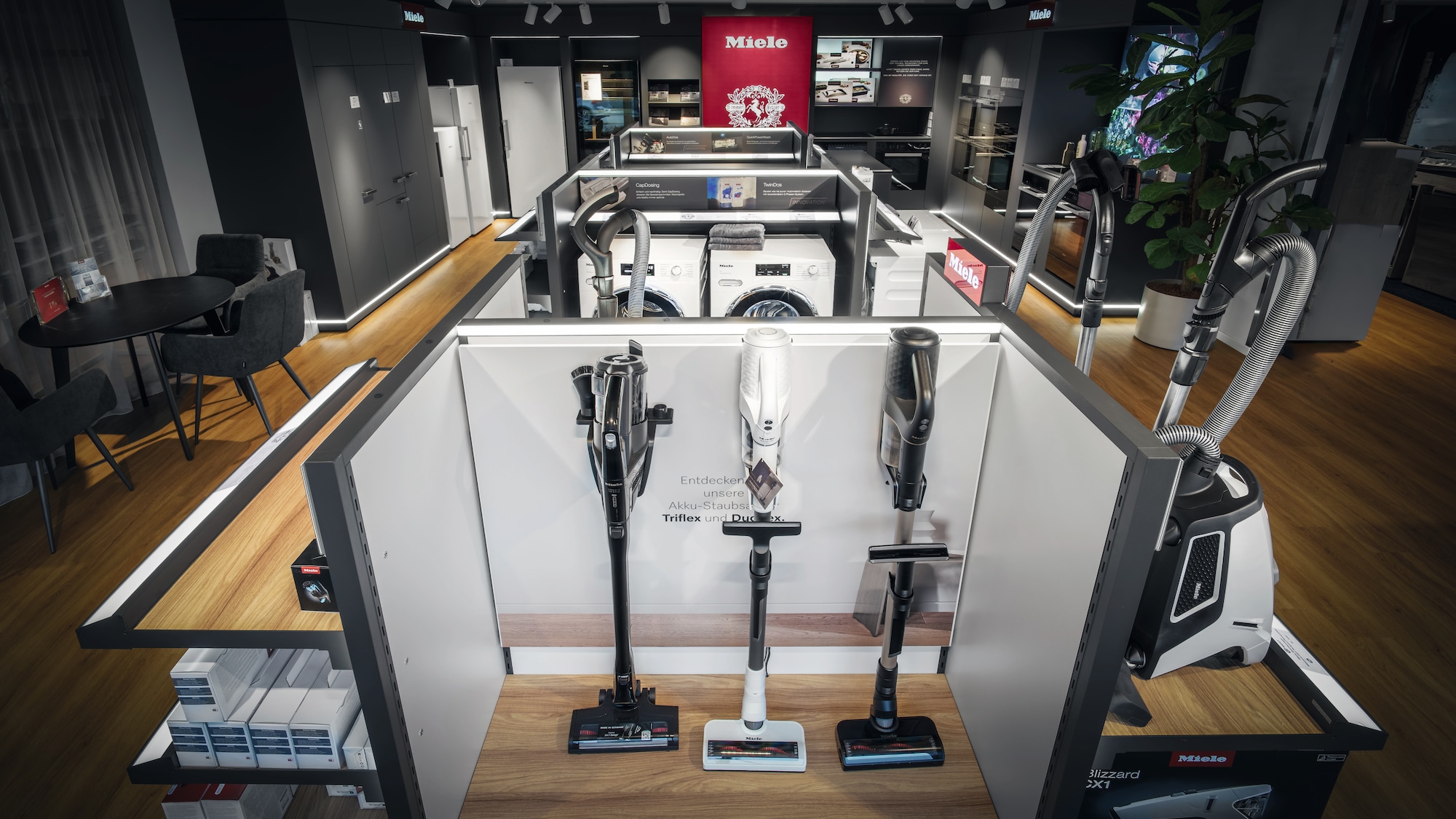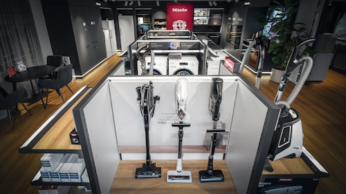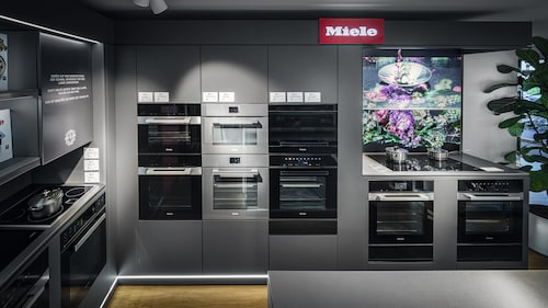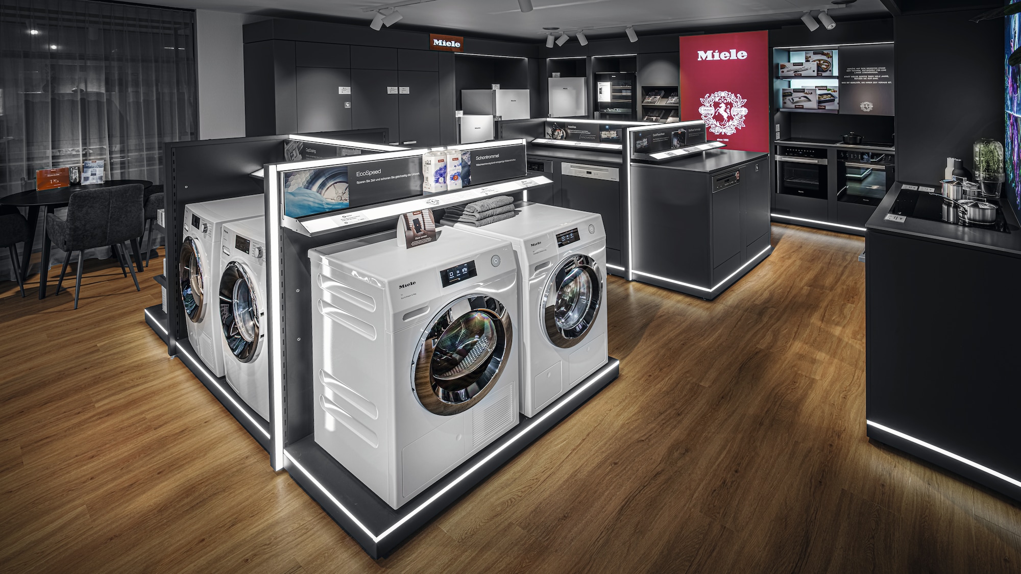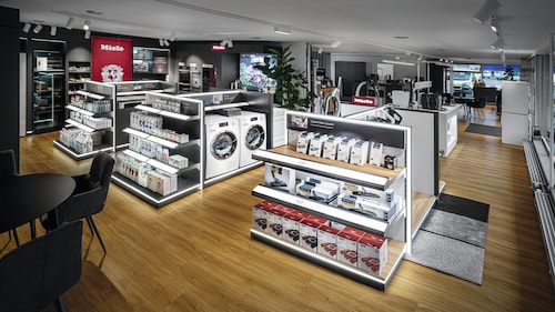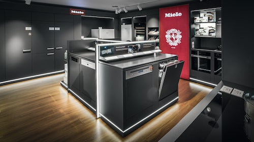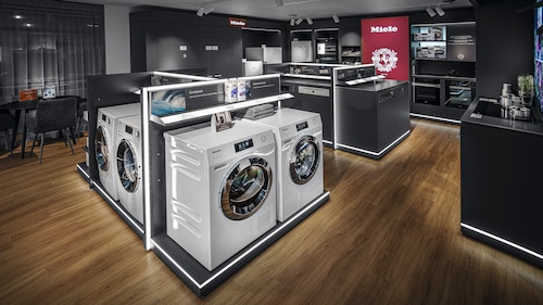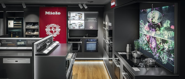 Dans notre grande exposition, vous pourrez expérimenter de près l'univers de Miele. Vous apprendrez à connaître les appareils, leurs différents éléments de commande et leurs fonctions. Vous découvrirez également les innovations qui vous seront utiles au quotidien. Comme par exemple la mise en réseau intelligente des appareils, qui vous permet de commander confortablement vos appareils via l’application Miele.