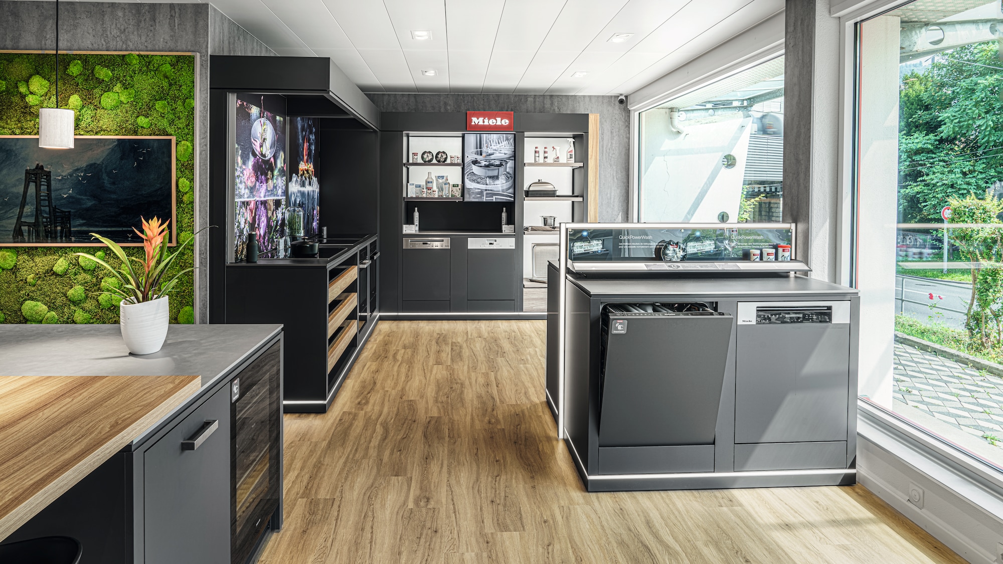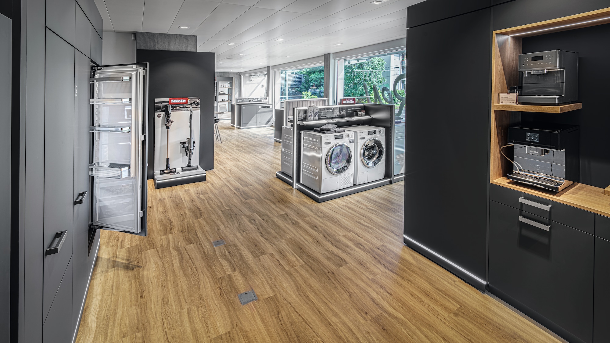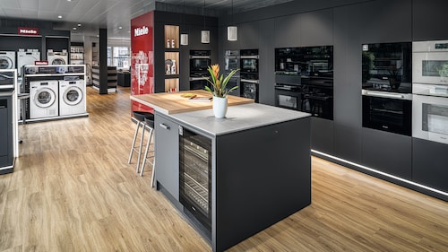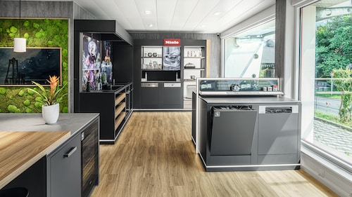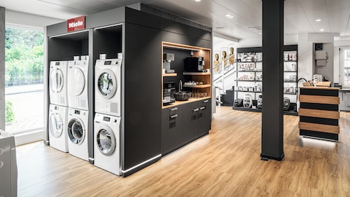 Dans notre grande exposition, vous pourrez expérimenter de près l'univers de Miele. Vous apprendrez à connaître les appareils, leurs différents éléments de commande et leurs fonctions. Vous découvrirez également les innovations qui vous seront utiles au quotidien. Comme par exemple la mise en réseau intelligente des appareils, qui vous permet de commander confortablement vos appareils via l’application Miele.