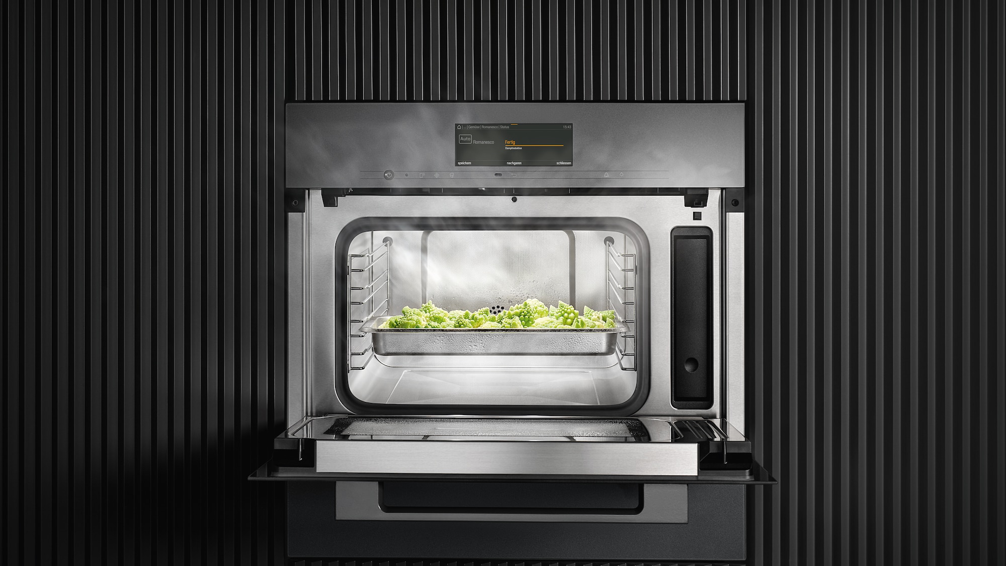 Le four à vapeur de Miele fonctionne sans pression à des températures comprises entre 40 et 100 °C. En plus de la cuisson à la vapeur sans pression, le steamer (four vapeur haute pression) de Miele permet une cuisson sous pression entre 101 et 120 °C. La pression permet de diminuer le temps de cuisson de moitié par rapport à la cuisson à la vapeur sans pression.