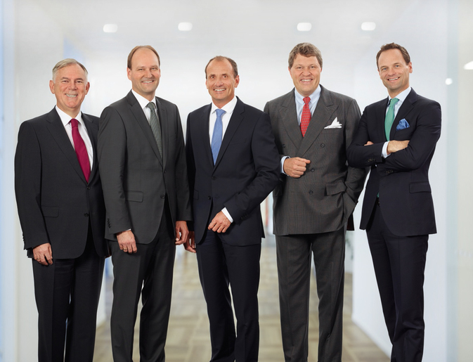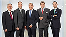 La direction générale de Miele avec le Dr Eduard Sailer, le Dr Markus Miele, Olaf Bartsch, le Dr Reinhard Zinkann et le Dr Axel Kniehl (d.g.). |