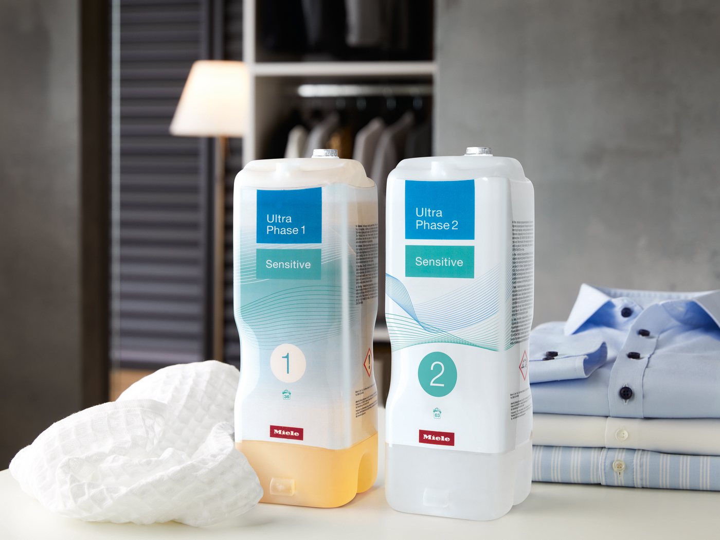 Depuis que Miele a lancé ses premiers produits de lessive en 2008, l’assortiment de produits a été constamment élargi. Les produits eux-mêmes sont également développés et améliorés en permanence. Unique en son genre, le système de dosage en deux phases “TwinDos”, avec ses produits de lessive liquides UltraPhase 1 et 2, constitue une étape importante pour le secteur du traitement du linge. UltraPhase 1 élimine d’abord les salissures telles que les graisses et les protéines, tandis qu’UltraPhase 2 entre en jeu pour les taches tenaces, comme l’herbe, le café, les fruits ou le vin rouge, et les supprime grâce à de l’oxygène actif. De cette manière, il est possible d’obtenir d’excellents résultats avec le linge blanc et de couleur, mais aussi d’économiser jusqu’à 30 % de produit de lessive par rapport au dosage manuel.