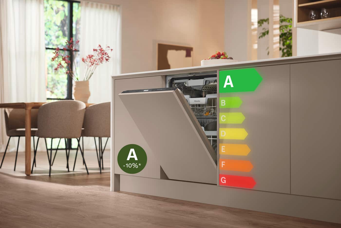Avec près de 100 ans d’expérience, Miele est plus que tout autre fabricant synonyme de compétence en matière de lavage de la vaisselle. Aujourd’hui déjà, plus de la moitié des lave-vaisselle Miele vendus en Suisse portent le label A ou B. Miele se démarque ainsi nettement du marché et renforce désormais encore sa position de leader en matière de durabilité. Avec la mise à jour complète du portefeuille des séries G 5000, l’efficacité énergétique la plus élevée est déjà proposée dans toutes les catégories de prix et répond ainsi au critère d’achat le plus important des consommatrices et consommateurs.