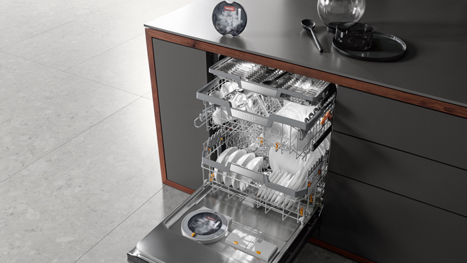 Les lave-vaisselle Miele éliminent efficacement les virus et les bactéries en combinaison avec les UltraTabs ou le PowerDisk de Miele dans le programme Hygiène ou Intensif. (Photo : Miele) |