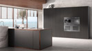 VitroLine, invece, rinuncia a elementi in acciaio inox di qualsiasi tipo ed è disponibile in vetro nei colori nero ossidiana, bianco brillante o grigio grafite. In questo caso, una solida maniglia metallica del colore dell'apparecchio racchiude un elemento di vetro smerigliato esattamente dello stesso colore. Con le sue superfici di alta qualità e gli elementi di design molto sobri, VitroLine si inserisce armoniosamente nel mondo delle cucine moderne.