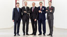 La Direzione del Gruppo Miele (da sin.): Dott. Stefan Breit (sezione tecnica), Dott. Markus Miele (comproprietario e direttore), Olaf Bartsch (finanze e amministrazione), Dott. Reinhard Zinkann (comproprietario e direttore), Dr. Axel Kniehl (marketing e vendita). (Immagine: Miele) |