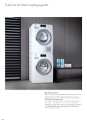 Zum stabilen Verbinden bietet Miele verschiedene Zwischenbau- sätze. Einige – z. B. der WTV 512 – sind mit einer praktischen Schublade ausgestattet. Hier können z. B. Zubehörteile aufbewahrt oder der Wäschekorb zum komfortablen Be- und Entladen des Trockners abgestellt werden.