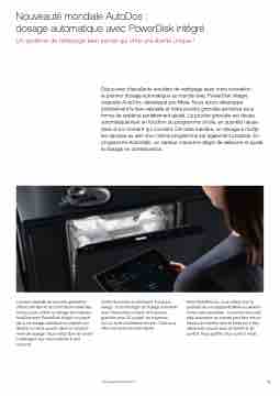 Les lave-vaisselle de nouvelle génération offrent une liberté de commande maximale. Vous pouvez utiliser le dosage automatique AutoDos avec PowerDisk intégré ou procé- der à un dosage classique en plaçant une tablette ou de la poudre dans le comparti- ment de dosage. Vous restez libre de choisir le détergent que vous préférez à tout moment.
